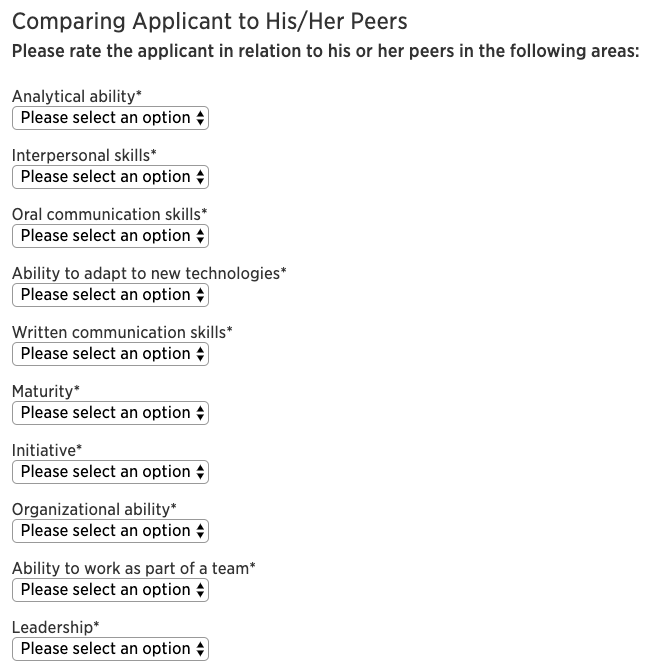 Most grad schools require recommenders to fill long forms rating students on various abilities (see an example below). Make sure that if you're asking me, I would be able to fill such a form without needing to put "I don't know" as my answer to many of the questions.
